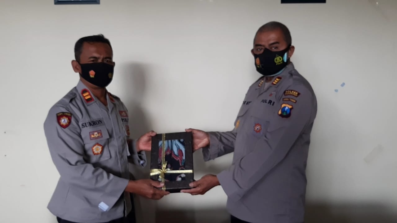 Pamit kenal di akhiri dengan pemberian cinderamata kepada AKP Beny Hartono S.H. oleh Kapolsek yang baru IPTU Sukron Mukharom dan Wakapolsek Sukorejo IPTU Nurul Hidayah. (aw)