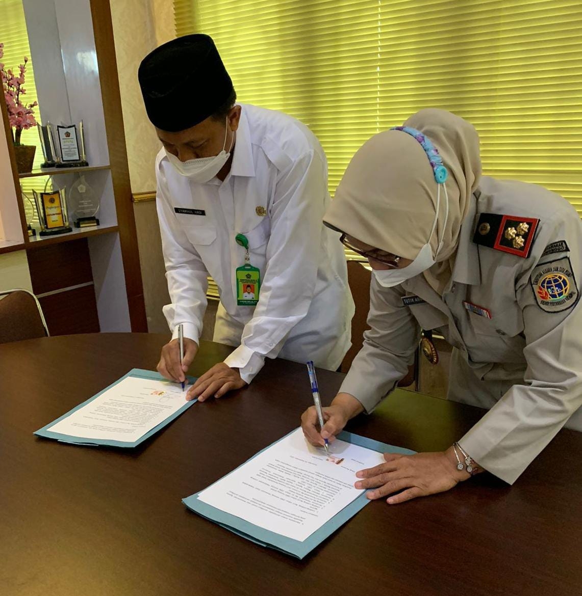 Tampak hadir dalam acara MoU, Kepala Kantor Kementerian Agama, Syaikhul Hadi,S.Ag,M .Fil.I dan Kepala BPN, Tutik Agustiningsih,SH,M.Human.