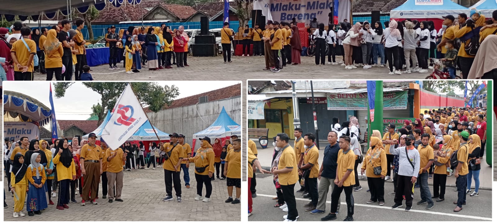 Mlaku mlaku bareng diikuti kurang lebih 668 peserta baik dari karyawan, keluarga, ba/spg, anak psg, rgs, pcm kota, bmt, alumni, komdir, serta mitra/surya mart. Drs. Muh. Idris Septianto. M.Pd memberangkatkan peserta jalan bareng yang mengambil start di halaman parkir DSS.