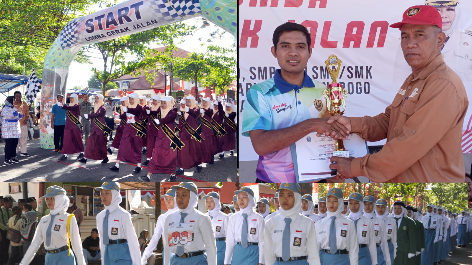 Suwanto, S.Pd. M.Pd ketua panitia sekaligus Kabid Pemuda dan Olah Raga Disparbudpora Ponorogo menjelaskan, penyelenggaraan gerak jalan dilaksanakan selama 3 hari dari jenjang SD yang dilaksanakan tanggal 9 Agustus, sedang jenjang SMP dilaksanakan tanggal 10 Agustus sejumlah 79 regu ambil nomor urut dan jenjang SMA dilaksanakan hari Sabtu tanggal 11 Agustus 2023 yang diikuti 54 regu.