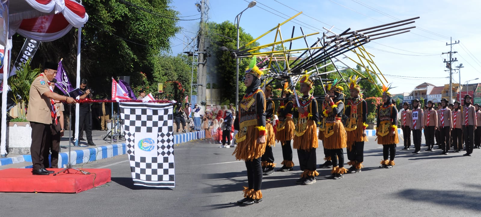Bupati Ponorogo Sugiri Sancoko hadir sekaligus memberangkatkan peserta pertama. Spesialnya lagi, tahun ini Kwarcab Ponorogo dalam parade dan kirab pramuka mengusung tema Nusantara yang merupakan perpaduan parade pioneering.