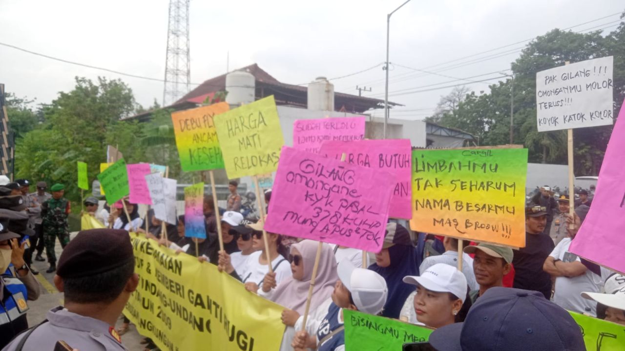 Ratusan Mak-Mak Dusun Kedamean Gelar Demontrasi Depan PT Cargill Tuntut Relokasi