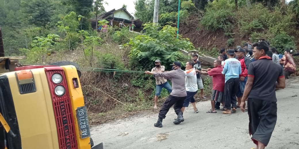 Ponorogo-beritaplus.id | Sebuah kendaraan Truck bernomor Polisi AE 8271 SG. mengalami kecelakaan tunggal di jalan raya Slahung - Ngrayun, tepatnya tanjakan Gayam dukuh Gembes desa Slahung kec. Slahung Ponorogo, Senin (12/10/2020) pukul 09.00 wib.