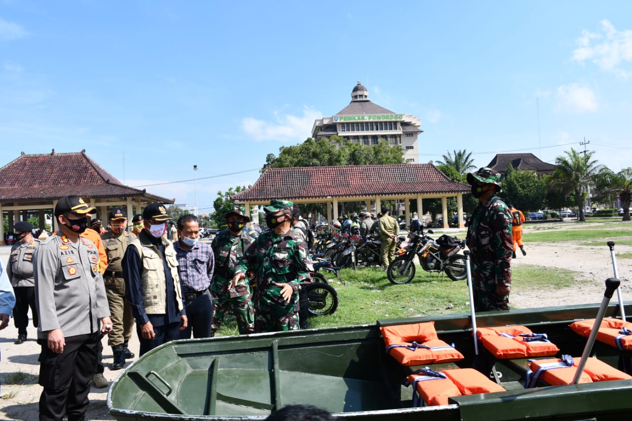 Ponorogo-beritaplus.id | Kodim 0802/Ponorogo hari ini melaksanakan kegiatan apel bersama gelar pasukan dan perlengkapan dalam rangka penanggulangan bencana Hydrometeorologi di wilayah Kabupaten Ponorogo Tahun 2020 di Aloon - Aloon Ponorogo, Kamis (12/11/2020).