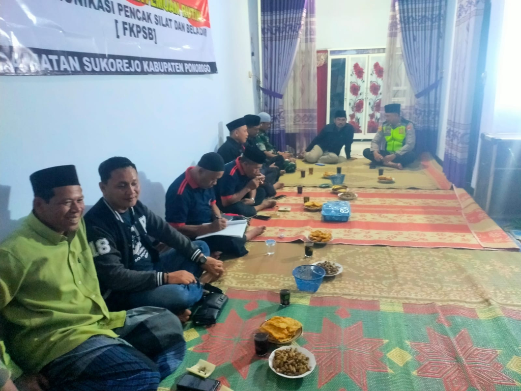 Ponorogo - beritaplus.id | Kapolsek Sukorejo Iptu Agus Tri, menghadiri kegiatan pertemuan rutin FKPSB (Forum Komunikasi Pencak Silat dan Beladiri) Kecamatan Sukorejo bertempat di Desa Gelanglor pada Rabu, 24 Desember 2025.