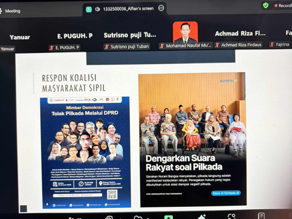 Melihat dinamika tersebut, Program Studi Doktor Ilmu Hukum (DIH) Angkatan 49, Fakultas Hukum Universitas 17 Agustus 1945 Surabaya (FH UNTAG Surabaya) mengadakan Seminar bertajuk "Pilkada Oleh DPRD : Perbaikan Demokrasi atau Kemunduran Demokrasi", yang diselenggarakan secara daring melalui Zoom pada Minggu, 18 Januari 2026.
