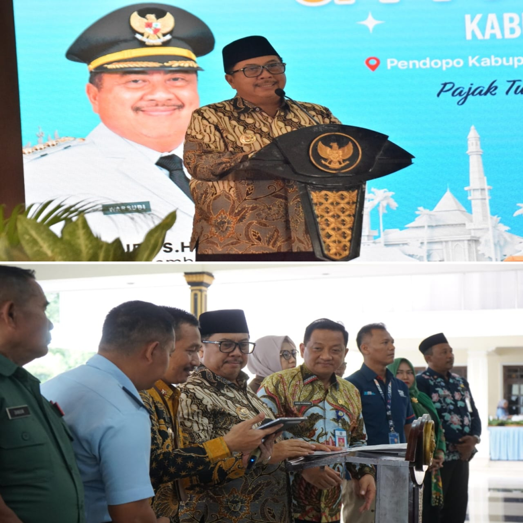 Bupati Jombang, Warsubi, S.H., M.Si., pada kesempatan tersebut juga memberikan teladan dengan melakukan simulasi pelunasan pajak secara langsung.