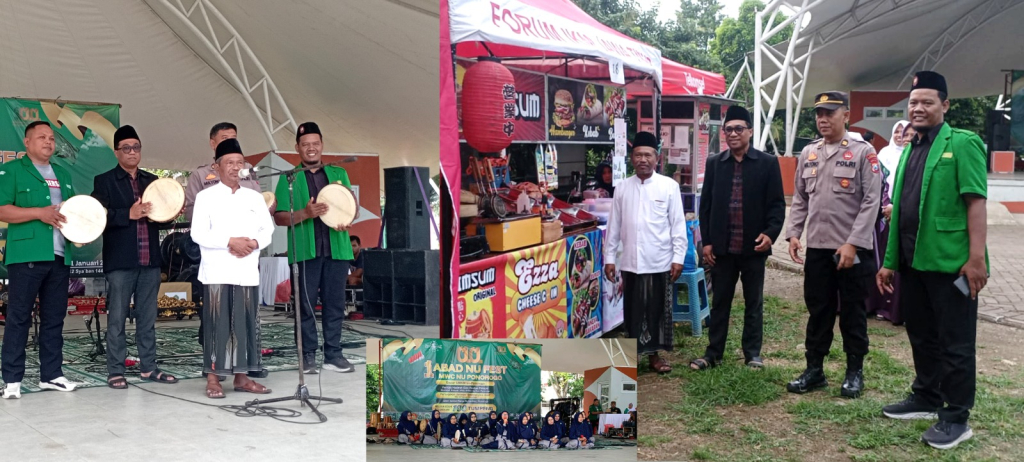 Opening ceremony kegiatan satu abad NU Fest yang diinisiasi keluarga besar MWC NU Ponorogo dibuka secara resmi oleh KH. Muhsin, M.Ag rais MWC NU Ponorogo ditandai dengan menabuh samproh.