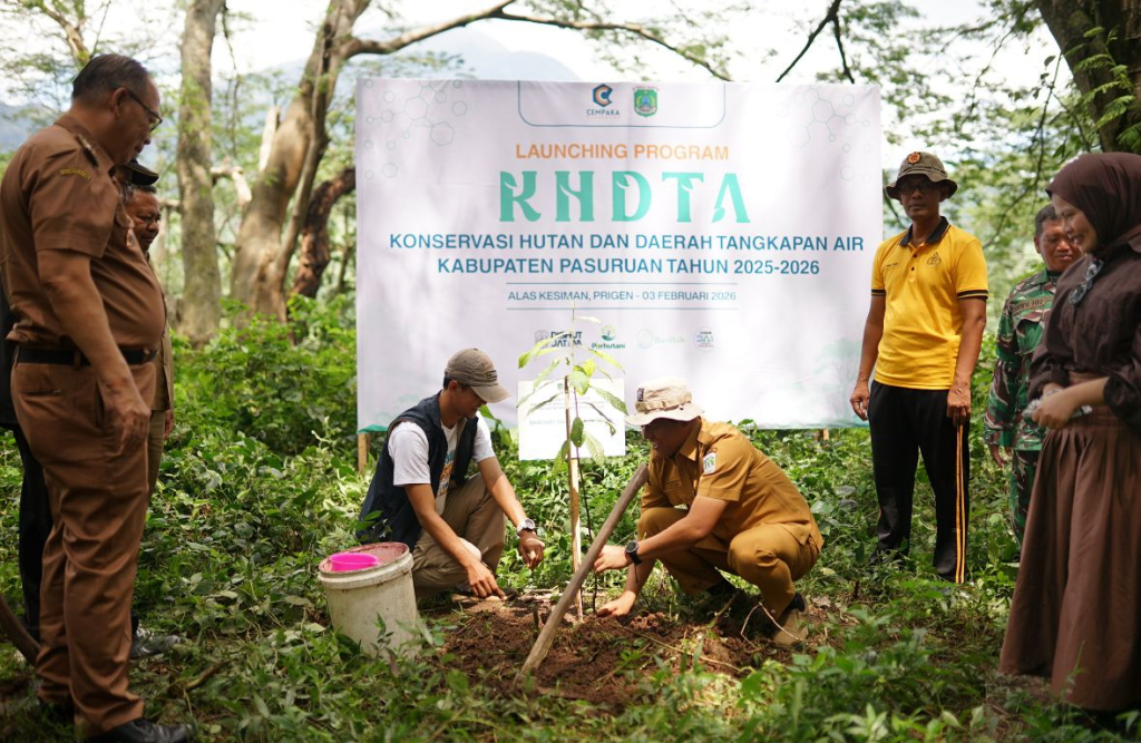 Pasuruan, beritaplus.id | Memulihkan hutan di wilayah setempat, Pemkab Pasuruan berkaborasi dengan Cempaka Foundation meresmikan Program Konservasi Hutan dan Daerah Tangkapan Air (KHDTA) Tahun 2026 di Alas Kesiman, Desa Sukoreno, Kecamatan Prigen, Senin (3/2/2026).