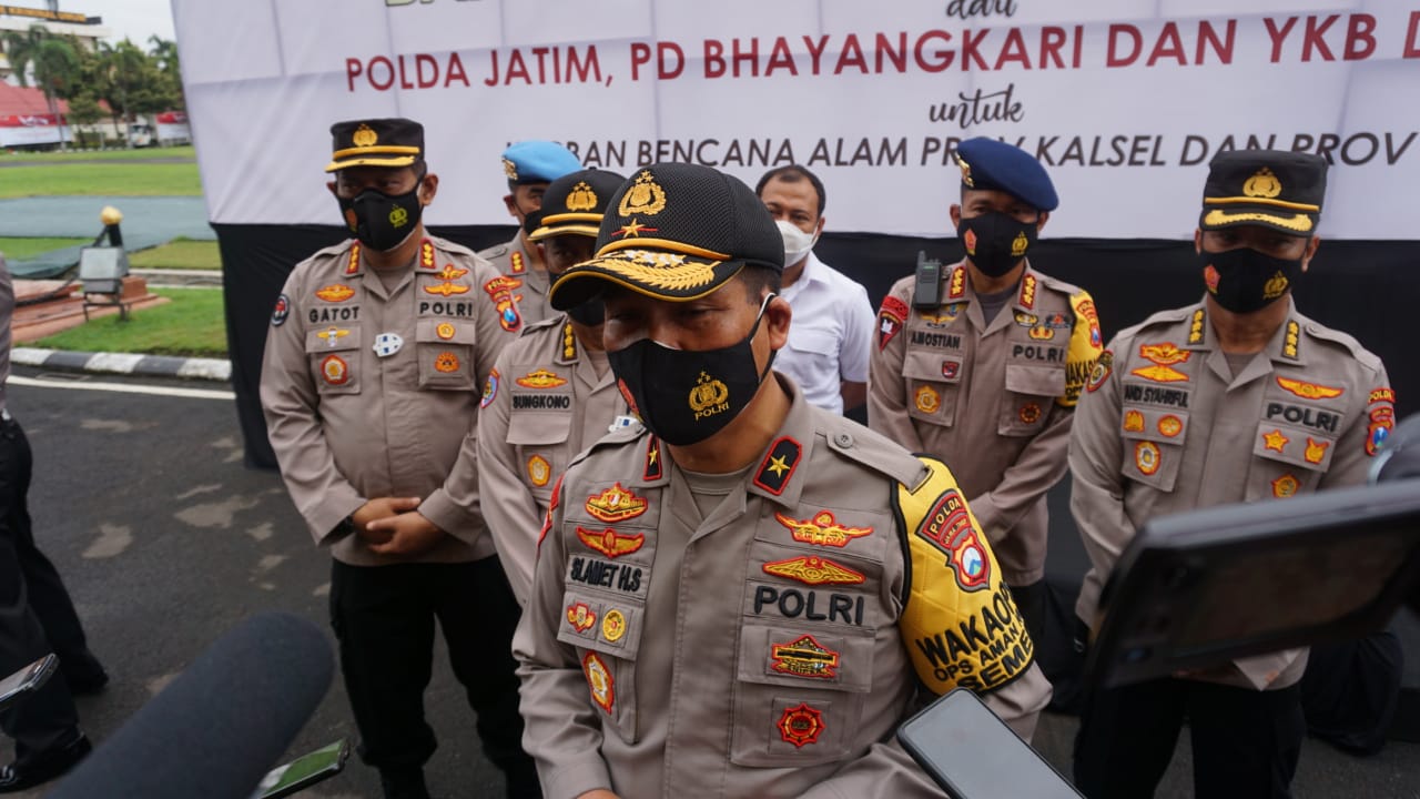 "Hari ini saya dan bhayangkari mewakili bapak Kapolda Jatim, memberangkatkan bantuan sosial berupa paket sembako. Untuk korban banjir di di Kalimantan Selatan dan Gempa Bumi di Sulawesi Barat," kata Brigjen Pol Slamet Hadi Supraptoyo, Wakapolda Jatim, Selasa (19/01/2021).