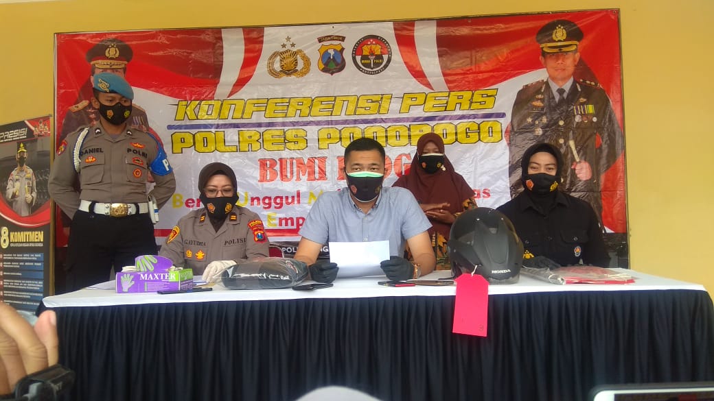 Kasat Reskrim Polres Ponorogo, AKP Hendi Septiadi, saat pers rilies, Rabu (14/4/2021) mengatakan pelaku saat mengendari motor Vixion nopol AE 4048 VM, berpapasan dengan korban.