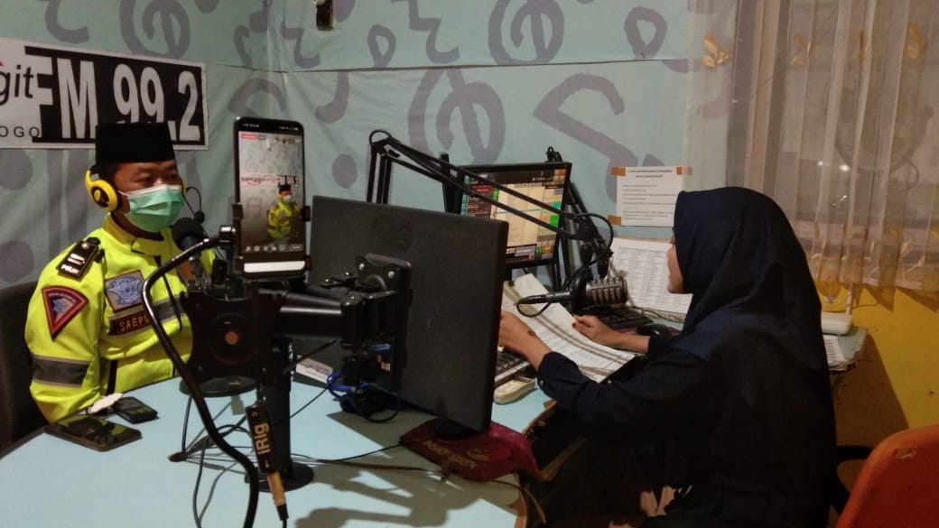 Sehabis berbuka puasa KBO satlantas Polres Ponorogo lakukan dialog interaktif di radio Songgolangit FM tentang larangan mudik lebaran tahun 2021,