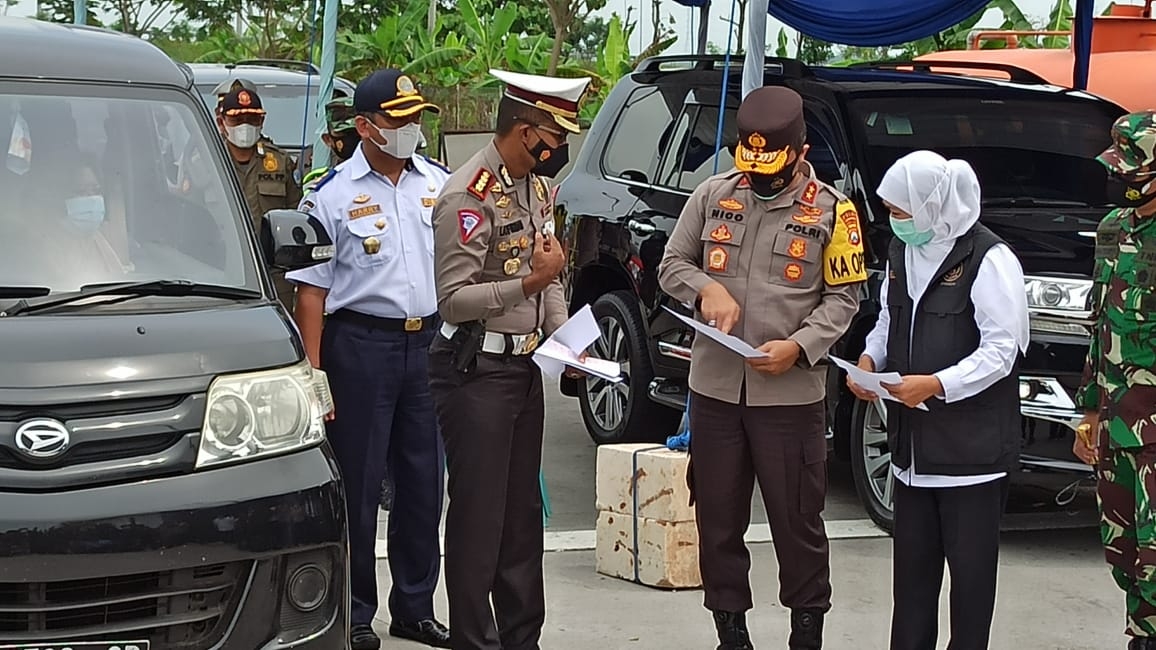 Kapolda Jawa Timur bersama Gubernur dan Pangdam, melakukan pengecekan secara langsung kepada masyarakat yang melakukan mudik dengan memeriksa surat-surat dari perusahaan maupun surat bebas Covid-19.