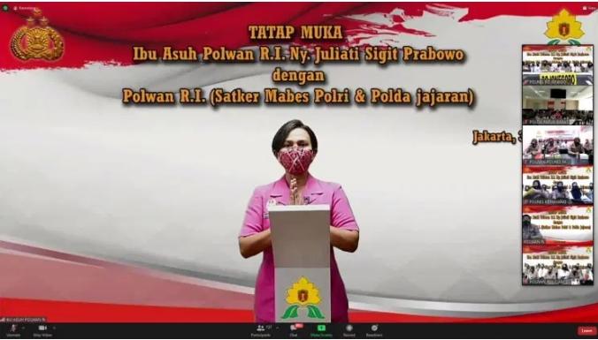 Ponorogo - beritaplus.id |Wakapolres Ponorogo Kompol Meiridiani, S.H., M.H., M.M. selaku Senior Polwan Polres Ponorogo pimpin kegiatan tatap muka secara virtual (Zoom Meeting) oleh Ibu Asuh Polwan RI Ny. Juliati Sapta Dewi Magdalena Listyo Sigit Prabowo di ruang Vicon Polres Ponorogo , Senin (31/5).